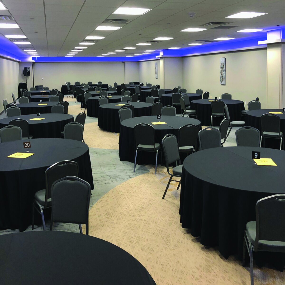 Our mobile escape game requires enough space for each team to complete their mission. This generally means 1 table or section of a table where the team can comfortably communicate and spread items onto their table.